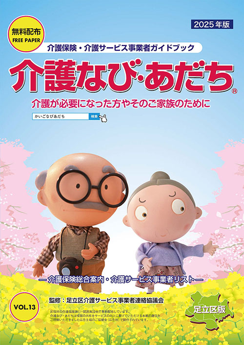 「介護なび・あだち」ガイドブックは、自治体の介護保険窓口や関連施設他で無料配布しています。